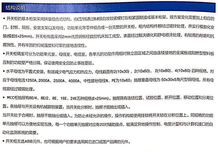 MNS型低压抽出式开关柜适用于三相交流50、/6Hz,额定电压660V,额定电流4000A以下的三相四线制及三相五线制电力系统,作为接受电能和分配电能之用。